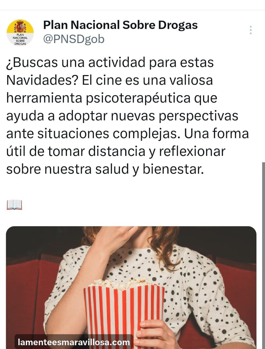 El día 25 vi este post del Ministerio (PNSD) en X sobre el cine y me hizo gracia.